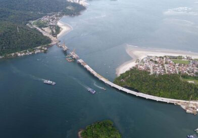 A Ponte de Guaratuba, a maior obra de infraestrutura em execução no Paraná, continua em ritmo acelerado e alcançou importantes