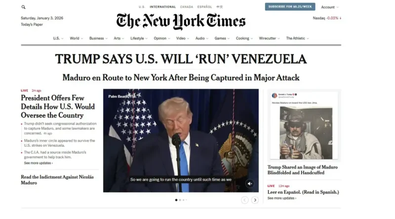 Ler maisUm dos principais jornais dos Estados Unidos (EUA) – o New York Times (NYT) – publicou neste sábado (3) um