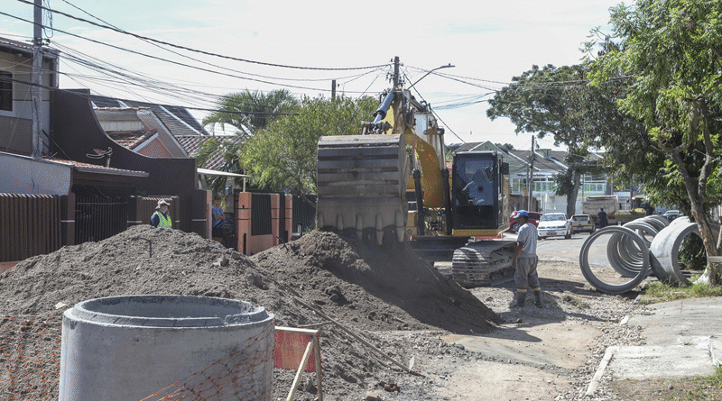 A obra em andamento prevê a implantação de aproximadamente 550 metros de nova rede de drenagem, com diâmetros que variam entre 80 centímetros e 1,20 metro. As estruturas vão ampliar significativamente a capacidade de escoamento das águas pluviais na região.