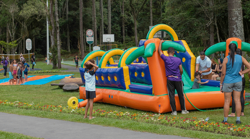 Entre as atrações disponíveis ao público estão brinquedos infláveis aquáticos, lona de skibunda com canhão de espuma, jogos de tabuleiro gigantes, futebol de botão, triciclo família, cama elástica, circuito de bicicleta, além de pintura em papel kraft e brinquedos recreativos e infantis.