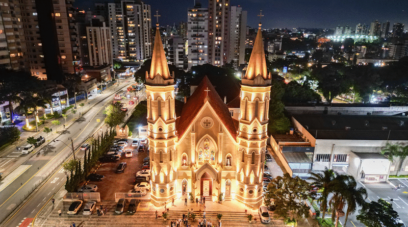 A nova iluminação foi pensada para realçar a arquitetura imponente e o valor histórico do templo, cuja pedra fundamental foi lançada em 24 de maio de 1914. Os novos equipamentos valorizam elementos como as fachadas, portas, torres, vitrais e símbolos religiosos, criando um efeito visual que reforça a identidade do local e convida moradores e visitantes a contemplarem ainda mais a igreja.
