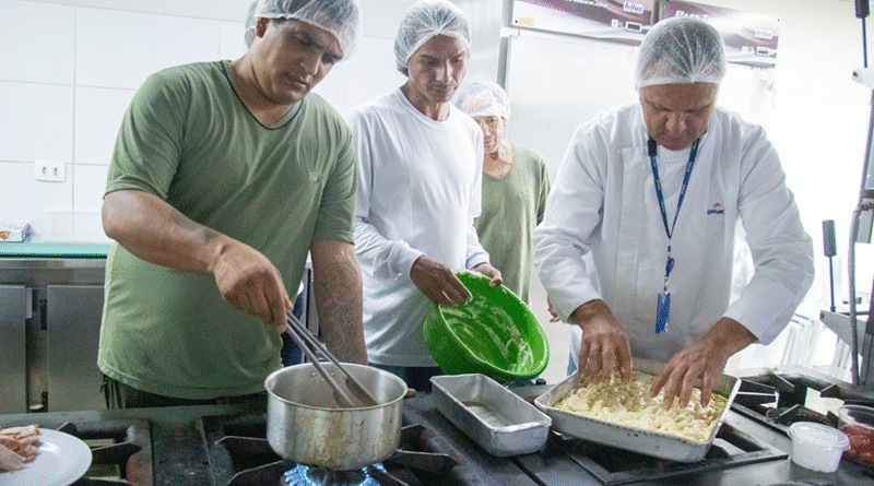 Nesta terça-feira (3/2), começaram as aulas práticas, com o preparo de massas para pães, e depois disso o grupo aprenderá a fazer diferentes tipos de hambúrgueres, anéis de cebola e molho barbecure.