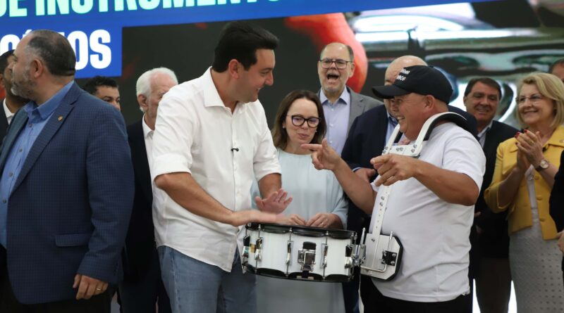 O governador Carlos Massa Ratinho Junior entregou nesta segunda-feira (1º) kits de instrumentos musicais para 90 municípios paranaenses e anunciou um pacote de R$ 100 milhões em novos investimentos para fortalecer a área da Cultura no Estado. A cerimônia, realizada em Curitiba, também contou com a participação da secretária estadual da Cultura, Luciana Casagrande Pereira, e marcou um novo ciclo de descentralização e qualificação das políticas culturais no Paraná.