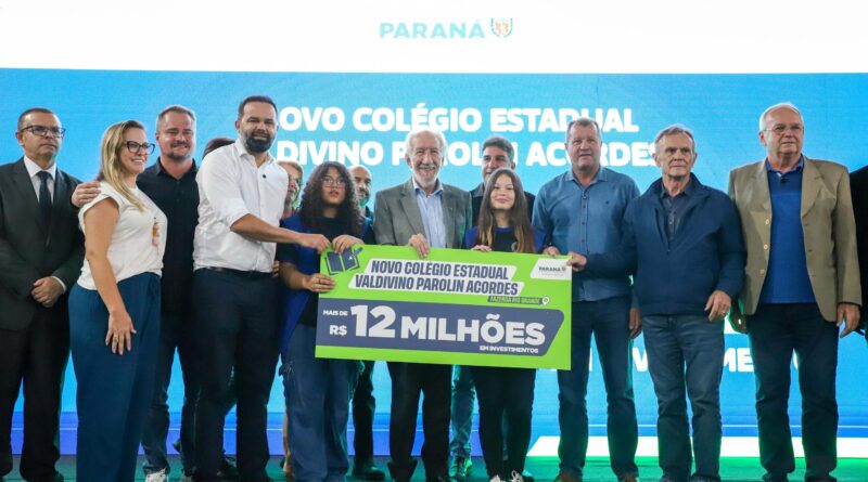 A Unidade Nova Escolar do Colégio Estadual Valdevino Parolin Acordes, localizada no bairro Estados, em Fazenda Rio Grande, Região Metropolitana de Curitiba, foi inaugurada nesta quinta-feira (12). Com investimento de R$ 12,8 milhões a comunidade recebeu uma escola que comporta 25 salas de aula, quadra poliesportiva coberta, cozinha e refeitório, pátio de convivência, biblioteca, laboratórios e espaços administrativos em mais de 4,1 mil m² de área construída.