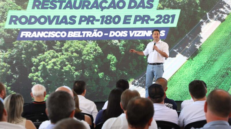 O governador Carlos Massa Ratinho Junior lançou nesta quinta-feira (18) a pedra fundamental das obras de restauração e ampliação da PR-180 e da PR-281, entre Francisco Beltrão e Dois Vizinhos, na região Sudoeste do Paraná. O investimento do Governo do Estado, por meio do Departamento de Estradas de Rodagem do Paraná (DER/PR), é de R$ 90,8 milhões.