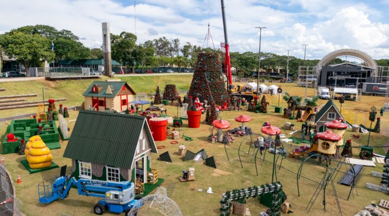 Uma estrutura impressionante, com direito a cerca de 210 mil lâmpadas e uma Árvore de Natal com altura equivalente a um prédio de oito andares, está sendo preparada para o “Natal da Família no Gramadão”, a partir de sábado (6), no Gramadão da Vila A, em Foz do Iguaçu (PR). A promoção é da Itaipu Binacional.