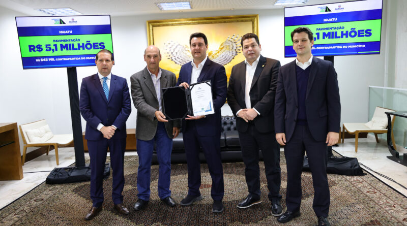 O governador Carlos Massa Ratinho Junior assinou nesta terça-feira (8) os contratos para a liberação de mais de R$ 20,8 milhões do programa Asfalto Novo, Vida Nova para os municípios de Francisco Alves, Rio Bom, São Pedro do Paraná, Iguatu e Diamante do Sul. Os recursos serão usados para que as cidades consigam pavimentar todas as ruas, implantar calçamento e instalar iluminação em LED em toda a área urbana dos municípios.