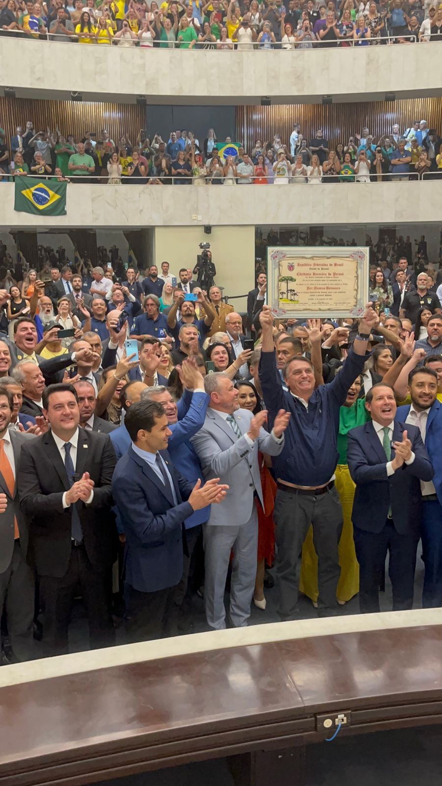 O ex-presidente da República, Jair Messias Bolsonaro recebeu o título de cidadão honorário do Paraná nesta sexta-feira (15/12/23), durante Sessão na Assembleia Legislativa do Estado do Paraná (ALEP).