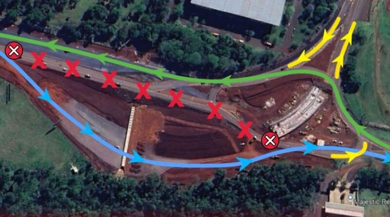 Veículos seguindo sentido aeroporto ou ao Parque Nacional do Iguaçu vão passar a utilizar uma nova alça implantada no local. A medida é necessária para avançar com os serviços da duplicação da rodovia.