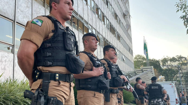 PRESENÇAS – Estiveram presentes no lançamento da operação o chefe de gabinete da Secretaria da Segurança Pública, coronel Fernando Klemps; o coordenador de Operações Integradas de Segurança Pública (Coisp), coronel Roberto Sampaio Araujo; o comandante-geral da Polícia Militar do Paraná, coronel Jefferson Silva; o subcomandante-geral da Polícia Militar, coronel Paulo Henrique Semmer; comandante do 1º Comando Regional da Polícia Militar, coronel Helio José Hornung; o delegado-geral da Polícia Civil do Paraná, Silvio Rockembach; o delegado-geral-adjunto da Polícia Civil, Riad Braga Farhat; e o diretor do Centro de Operações Policiais Especiais (Cope) da Polícia Civil, Rodrigo Brown.