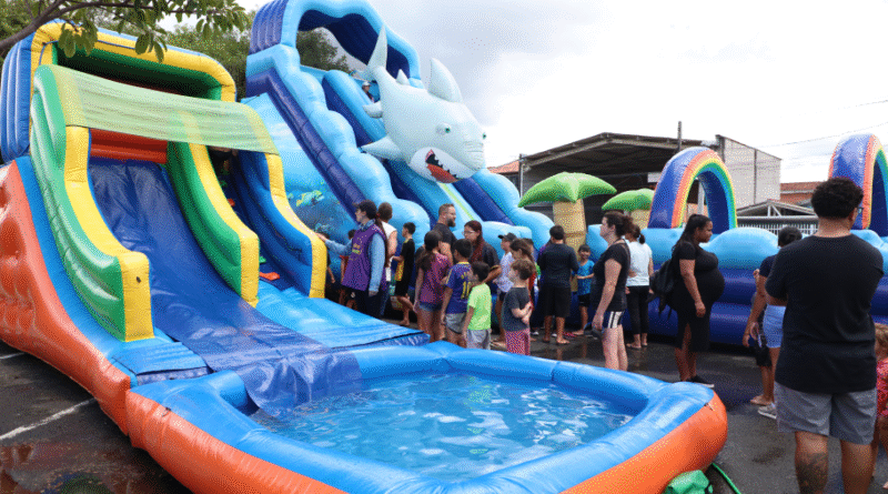 Estão programados brinquedos com água, futebol de sabão, multi play aquático e tobogã splash. Pode haver alteração na programação, por conta das condições climáticas. Outras atividades programadas são oficinas culturais, brinquedos infláveis, espaços de leitura, jogos e outras opções para todas as idades.