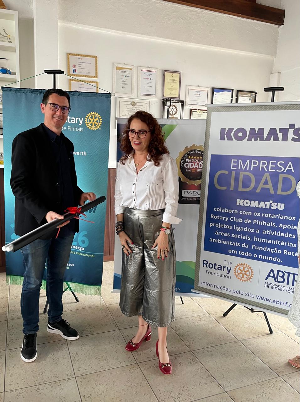 Durante a solenidade, com admiração e sincera gratidão, o Rotary Club de Pinhais reconheceu os representantes das empresas cidadãs Paulo Cesar Marcusso (Komatsu Forest) e Carlos Eduardo Rodrigues (Parc Autódromo) com a Comenda Paul Harris, a mais alta distinção concedida pela Fundação Rotária do Rotary International.