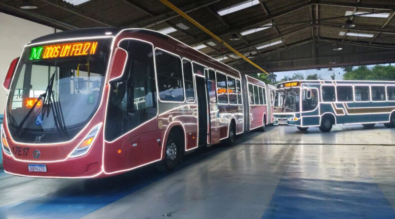 Ônibus com iluminação de Natal começam a circular na Região Metropolitana de Curitiba